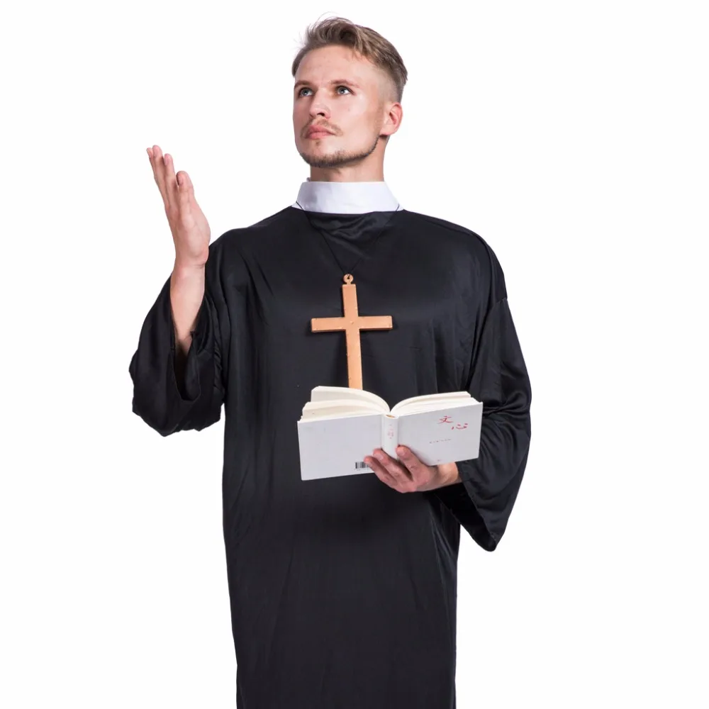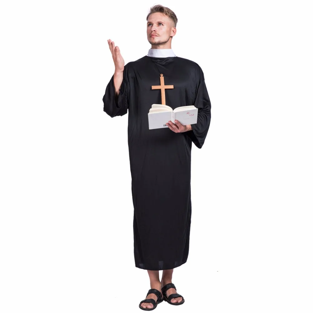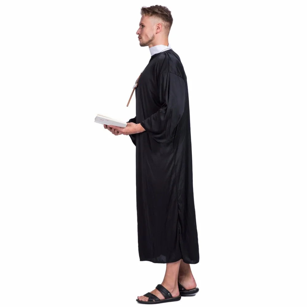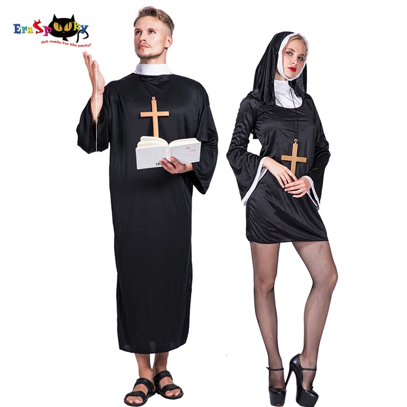 Eraspooky Black Sexy Nun Prinest Cosplay Halloween costume for Adult Slutty Nun Women Church Father Robe Matching Couple Outfit