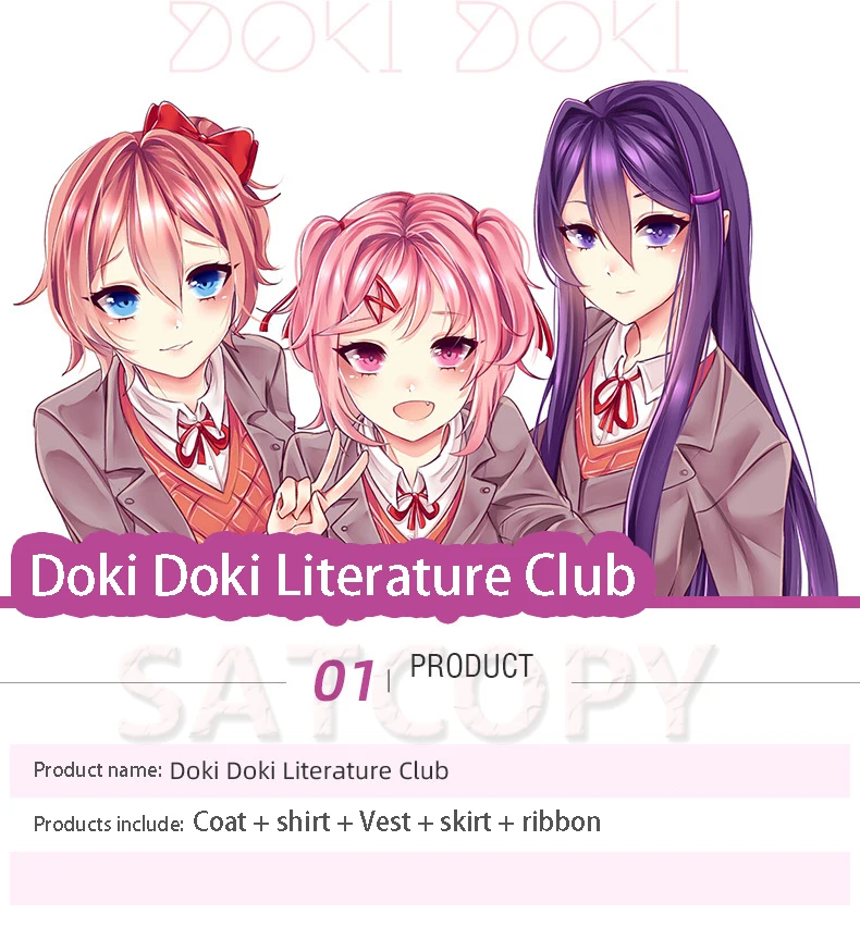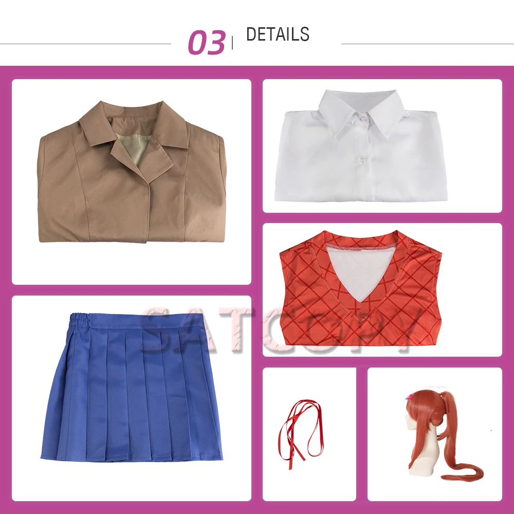 Game Doki Doki Literature Club Cosplay Sayori Natsuki Yuri Monika Cosplay Costume School Uniform Wig Skirt Women Anime