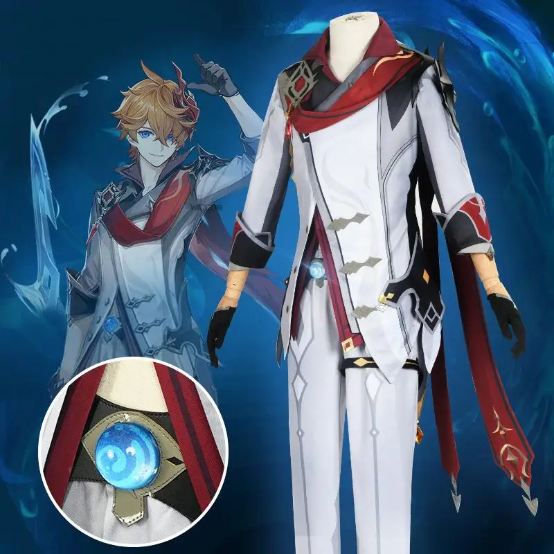 Genshin Impact Childe Tartaglia Cosplay Costume Wig Shoes Earrings Game Suit Anime Costume Halloween Party Outfit Men
