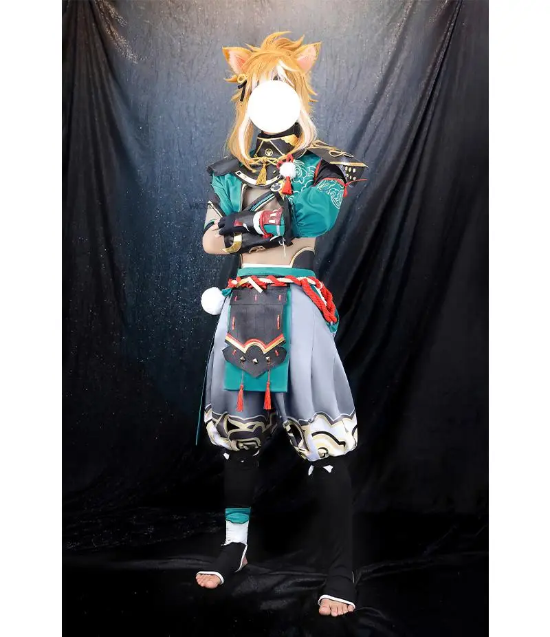 Genshin Impact Gorou Cosplay Costume Gorou Cosplay Costume Men Blue Fox Boy Costume Pants Tail Ears Full Set