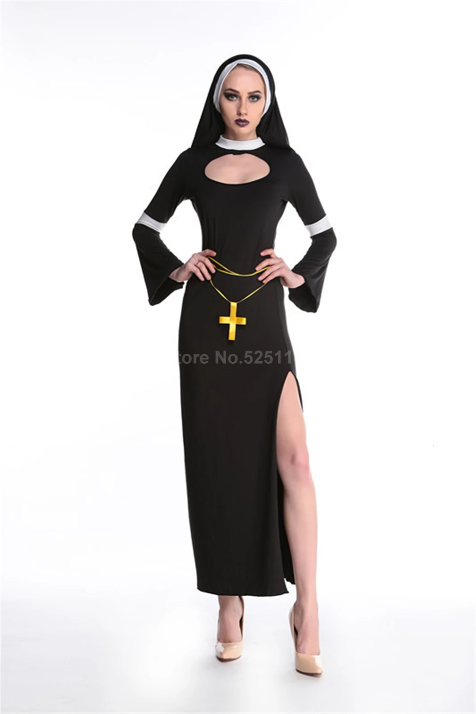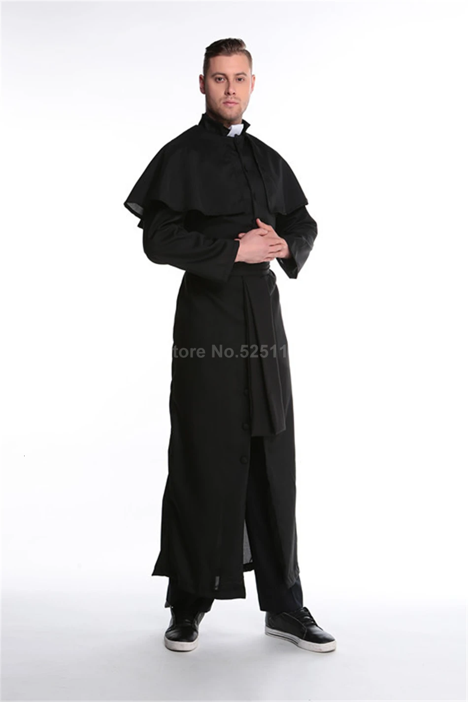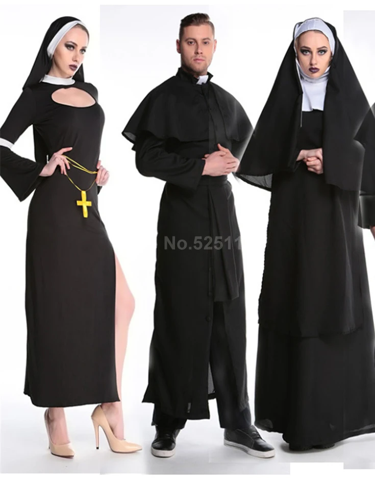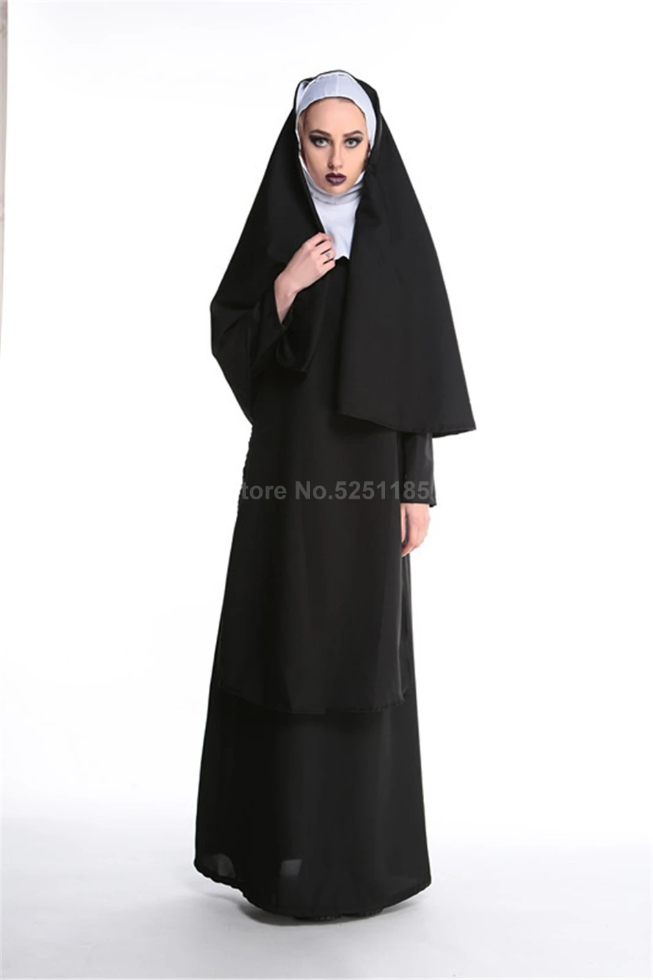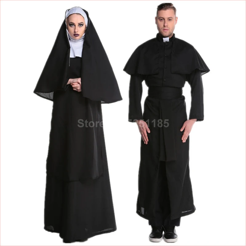 Medieval Halloween Men Women Monk Priest Nun Robe Gown Coat Missionary Cosplay Virgin Mary Dress Party Costumes Scarf Headpiece
