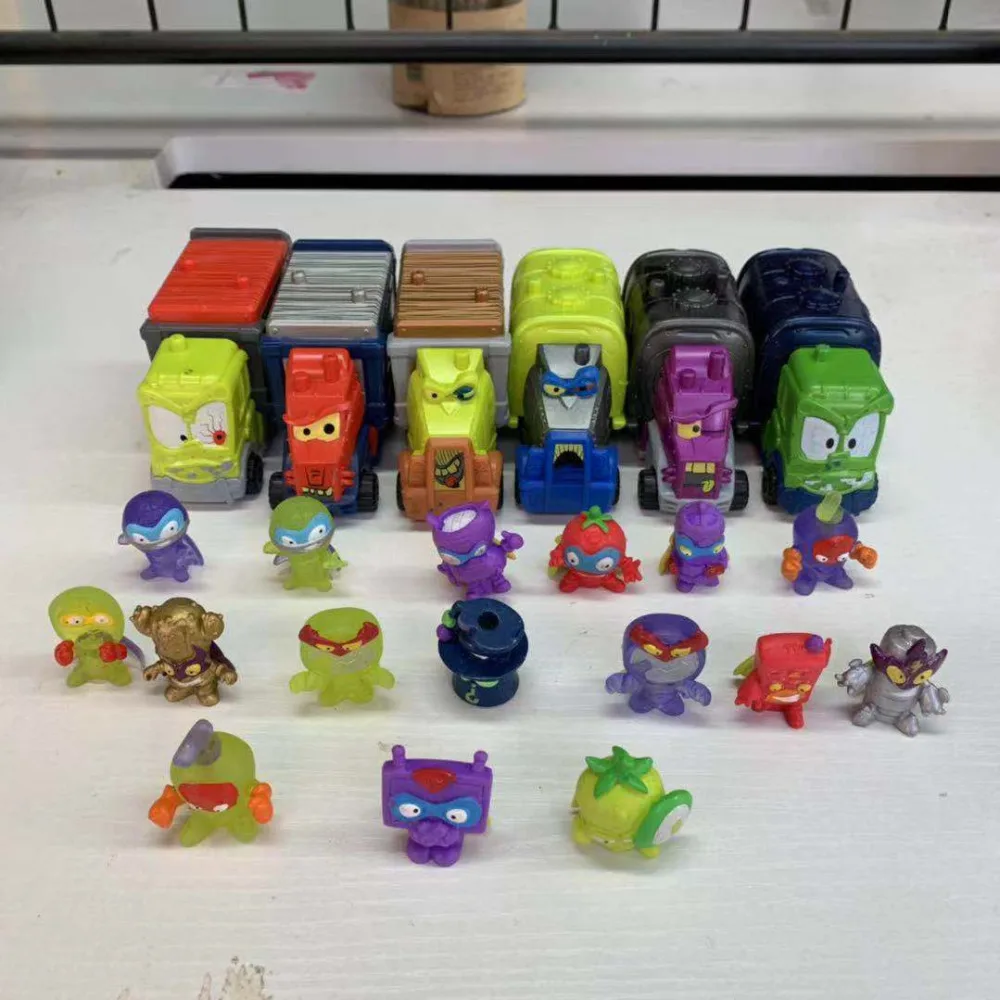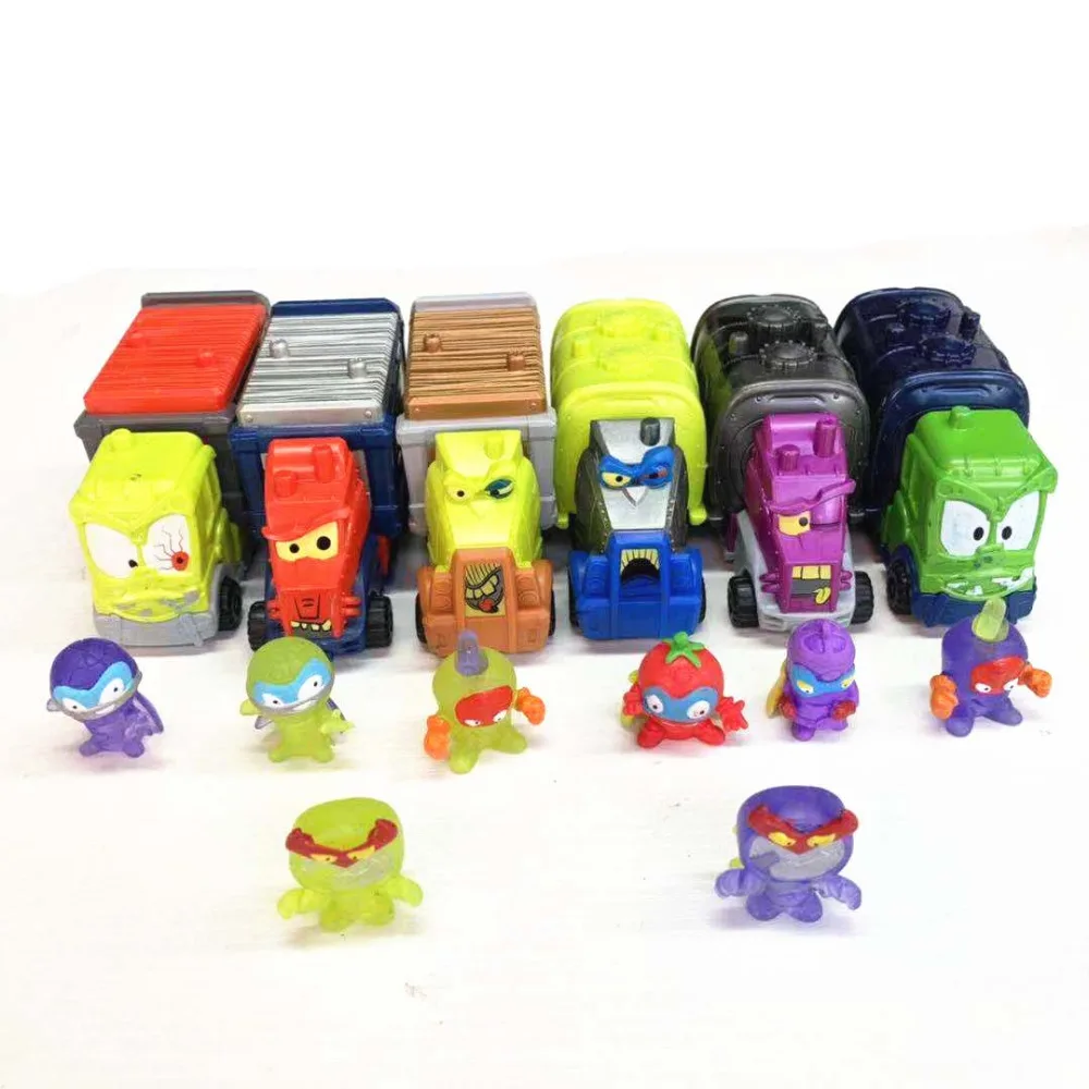 Random 1pcs super zings +1pcs truck model for kids diy toys 3cm soft superzings collection figure dolls for children playing