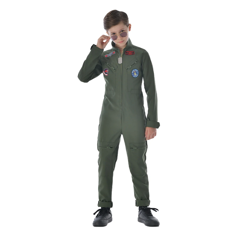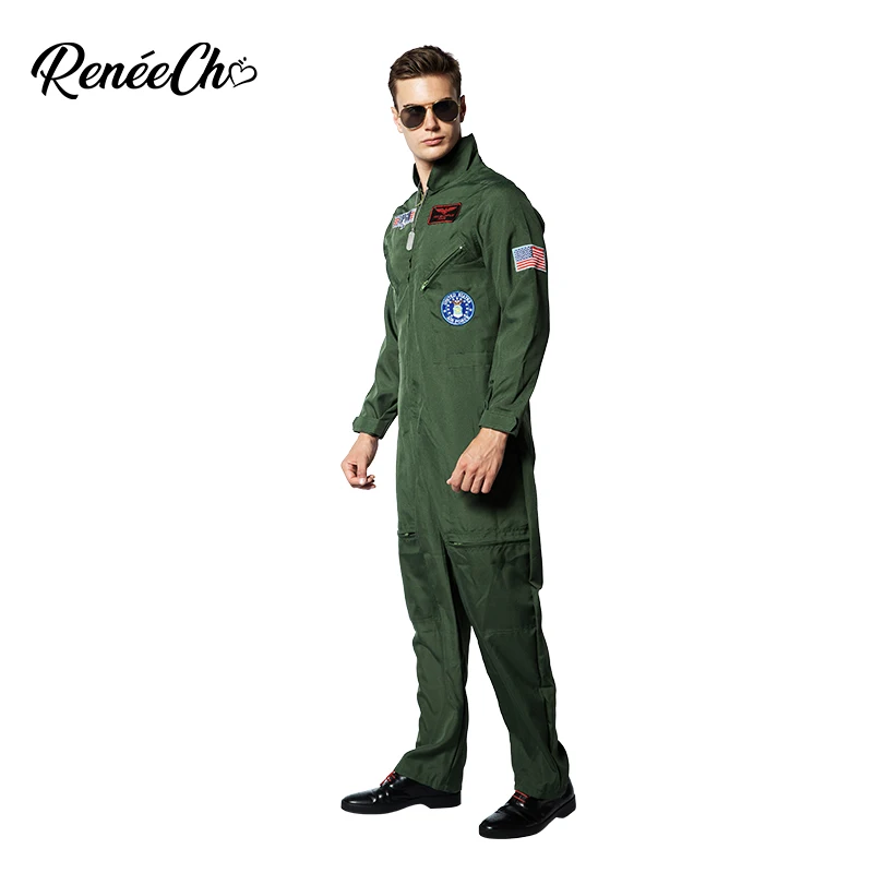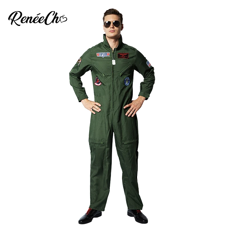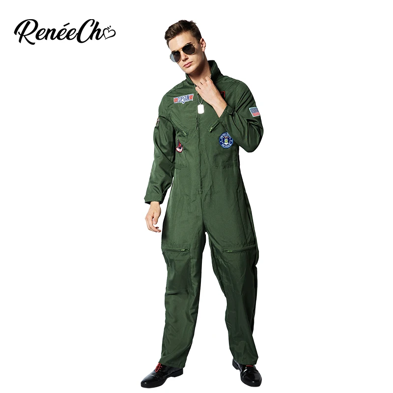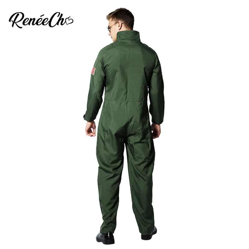 Reneecho Men Top Gun Flight Suit Costume Boys Air Force Fighter Pilot Jumpsuit Halloween Costume For Family Purim Cosplay