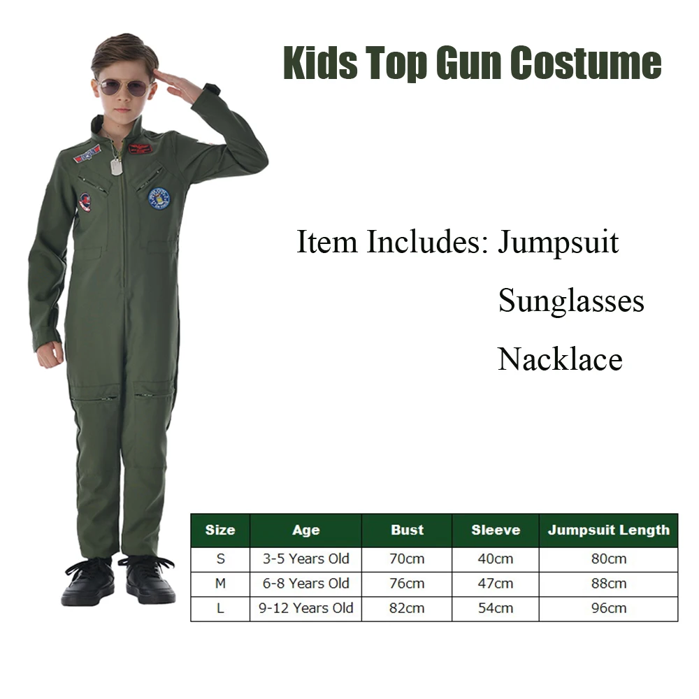 1. The Top Gun Costume Includes : Jumpsuit / Sunglasses / Necklace